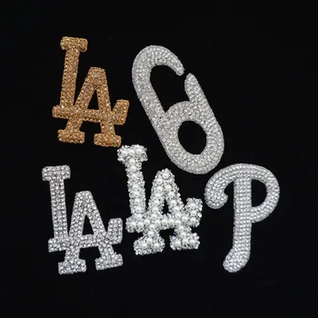 Gold Iron on Letters Rhinestone Patches Clothing DIY Alphabet Beaded Designer logo Iron on Patch for Hat